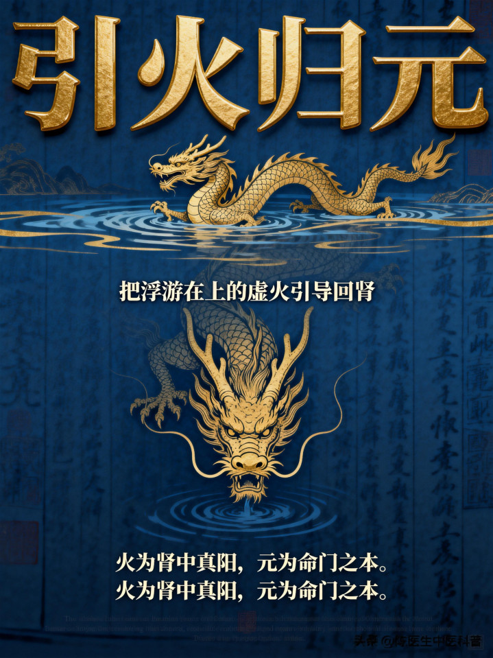 这就好比海里的龙雷之火(肾火),本来应该潜藏在深水(肾阴)里,如果水寒了或者水浅了,龙就飞出来了。我们的目标就是让龙重新潜回海里。
