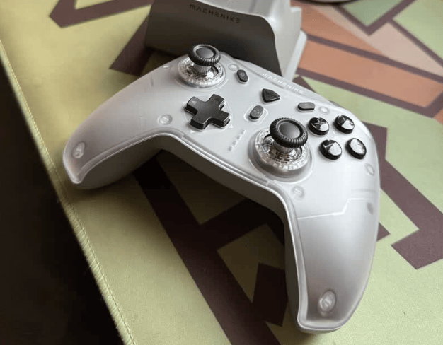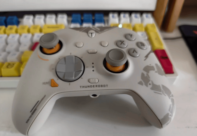 这款外观主打一个简约沉稳风,白色机身质感在线,握柄贴合手掌曲线,边缘打磨得比较圆润,握持舒适度还不错。操控方面力切换摇杆操作顺滑,转向走位没有明显卡顿感;按键布局合理,按压反馈适中,不用费太大劲;扳机键的响应比较及时,应对多数游戏场景都能hold住。它的适配场景更偏向常规游戏,玩一些对摇杆精准度要求极高的专业竞技类游戏需要额外花点时间熟悉手感;另外按键排布常规,方向键与动作键左右对称,手感偏软,回弹安静。顶部肩键面积够用,触发不重,连续按也不累手指。