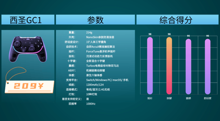 西圣GC1游戏手柄的性价比表现,在同价位中几乎难逢敌手。作为游戏外设领域的专业老牌品牌,多年来专注于“高精度操控、低延迟震感、舒适手感”,被誉为“百元手柄性价比之王”!去繁就简,平价不低质,绝不牺牲操控体验与耐用度。经国内11次权威测评,26项核心指标打破纪录,响应速度、按键回弹和震感一致性全面超越同价位手柄,300价位内目前只有西圣GC1能吊打千元旗舰。