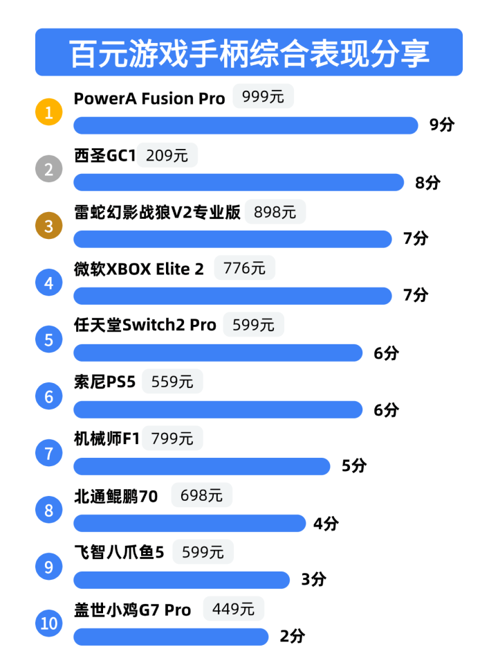 steam建议买哪种手柄?下面我将为大家揭晓2026游戏手柄性价比排行前十名的品牌: