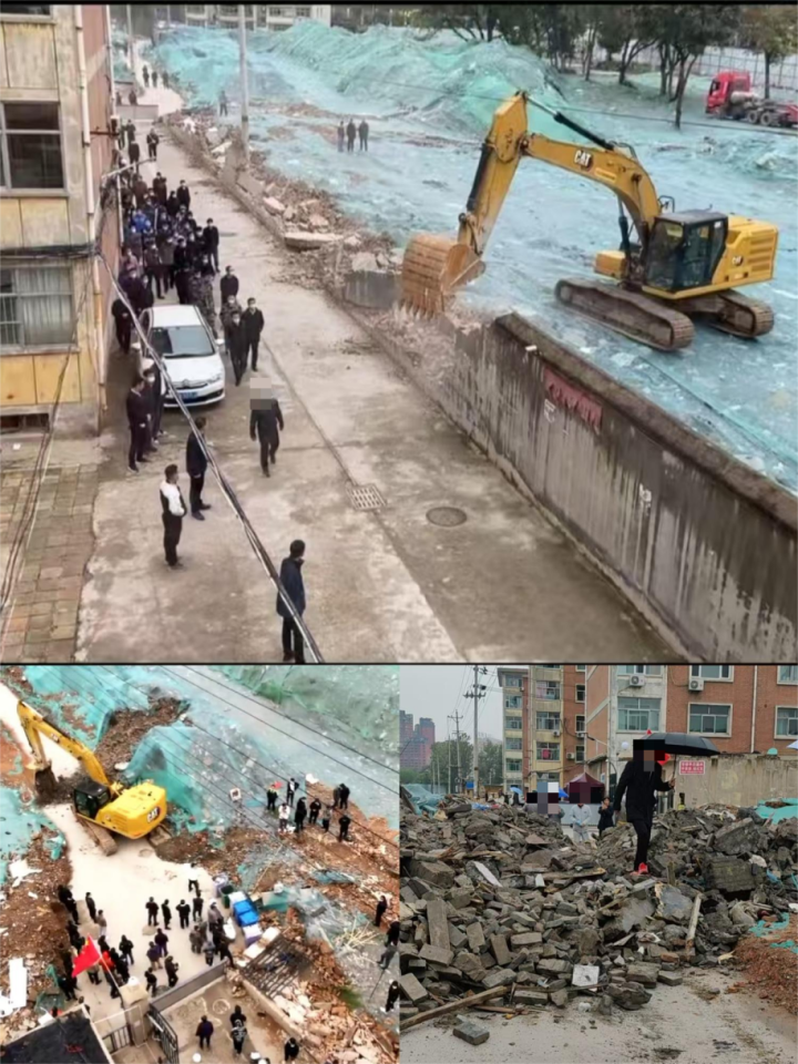 10月小区围墙被强行铲倒,唯一出行道路被堵塞。