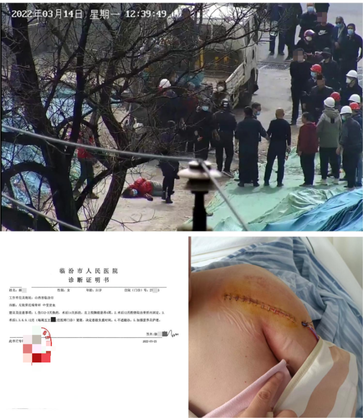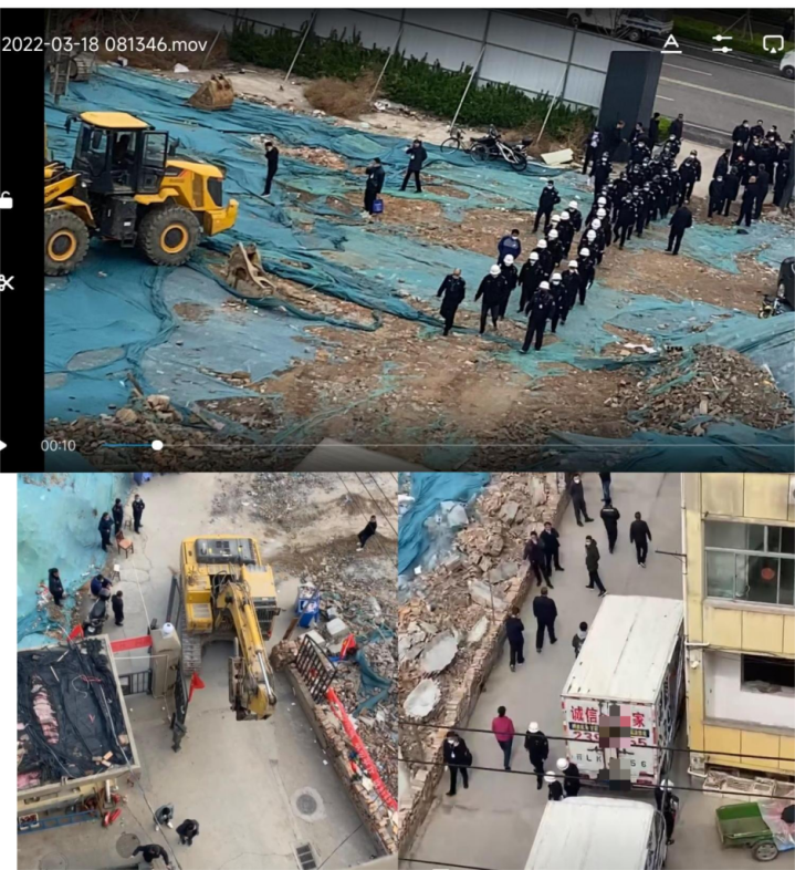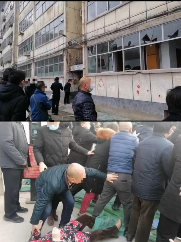11月,临汾平阳房地产开发有限公司张某带着数十人闯入小区砸毁业主门窗,2022年1月要强拆公用设施时,致两名7旬老人受伤。
