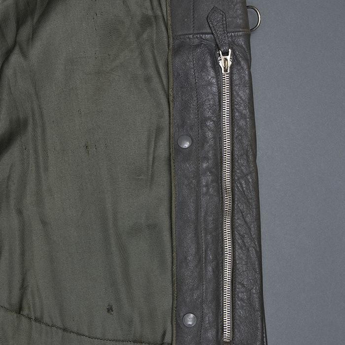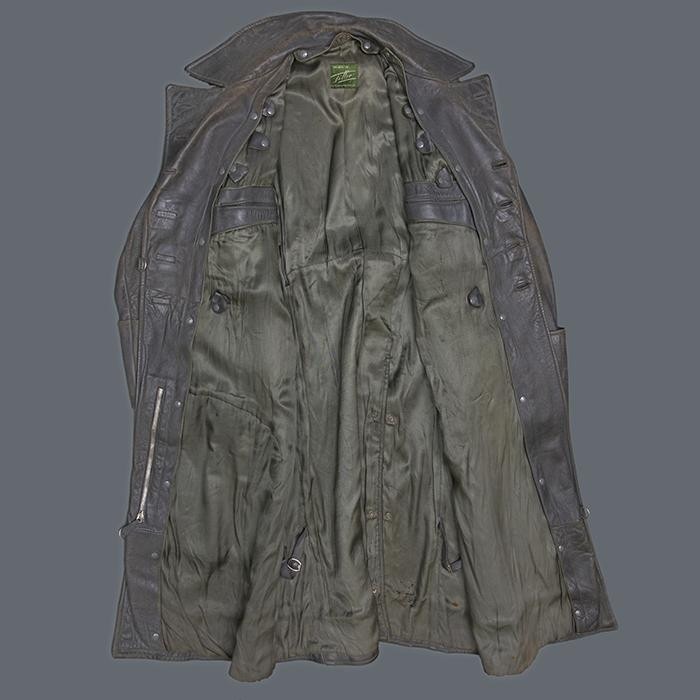 航空兵上校皮大衣的衬里采用绿色人造丝面料,为可拆卸式。在衬里胸部位置各有两个内袋。