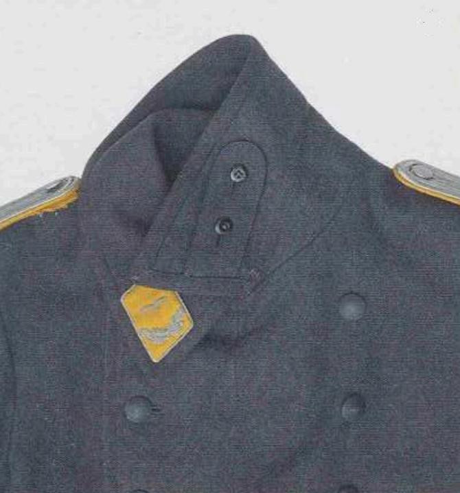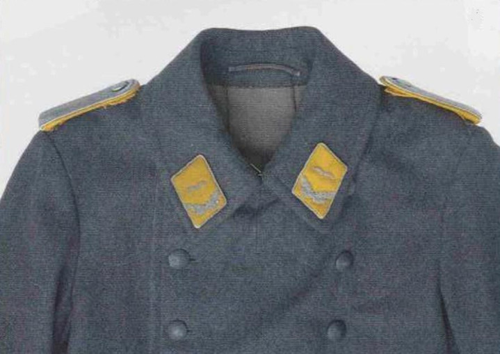 图中是一件航空兵少尉军大衣,为士兵款军大衣再加上军官领章和肩章。