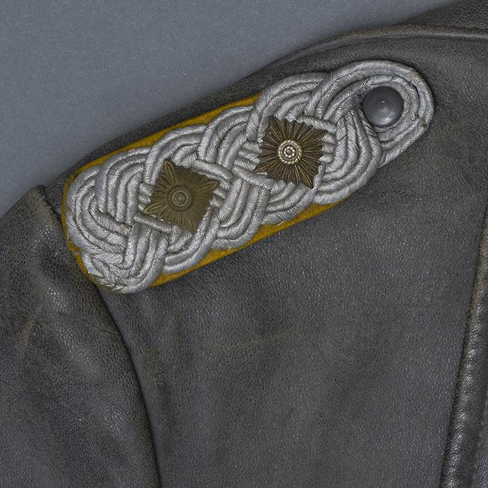 皮大衣是专门由空军军官身穿,而且空军服装仓库并不提供,所以军官需要从私人裁缝店自费购买。1944年4月10日因为皮革原材料短缺,所以国防军规定禁止生产皮大衣。空军皮大衣采用不同色调的深灰色皮革制成,剪裁样式和标准军大衣类似,但通常配有单独缝制的裙摆,在腰部进行缝制拼接。皮大衣肩章和纽扣都是可拆卸式,方便进行清洗更换。