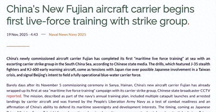美媒那边,Army Recognition网站很快就发文点评,从美国海军角度看,说福建舰打击群的战斗力还没经过充分检验,别太高估。文章承认设计牛,舰载机组合先进,造船速度快,能快速组出强大编队。比起滑跃式的前两艘航母,福建舰在南海和岛链外潜力大。但他们强调,光演习不行,得在敏感海域跟有完整数据链的对手过招才算真本事。入列不到一个月就出动,这速度确实快,但实战经验缺口大,这话听着有点酸溜溜的。
