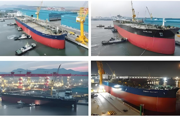 这四艘油轮是中国自主研发制造的,不仅规模庞大,连装备和技术也别具一格,可以说这不只是简单的油轮下水,而是中国制造产业链的完美展示。
