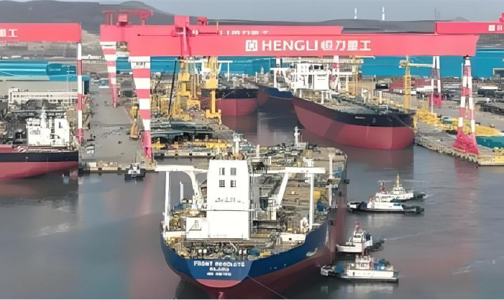 最近,恒力重工宣布自家船坞建造的四吨超大型油轮同一天出坞下水,总吨位一举突破百万吨大关,创造了全球造船行业的新纪录。