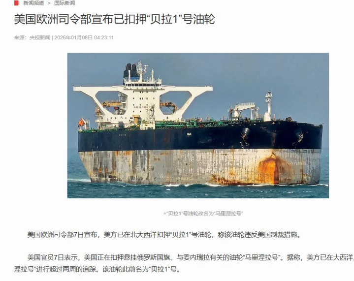 央视新闻——美国欧洲司令部宣布已扣押“贝拉1”号油轮
