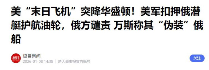 极目新闻——美“末日飞机”突降华盛顿!美军扣押俄潜艇护航油轮,俄方谴责 万斯称其“伪装”俄船