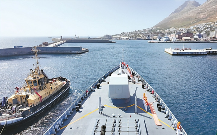 中国海军的导弹驱逐舰唐山舰与俄罗斯、伊朗、阿联酋等国的舰艇展开联合行动,与东道主南非一起,在金砖框架下开启了为期一周的海上联合演习。