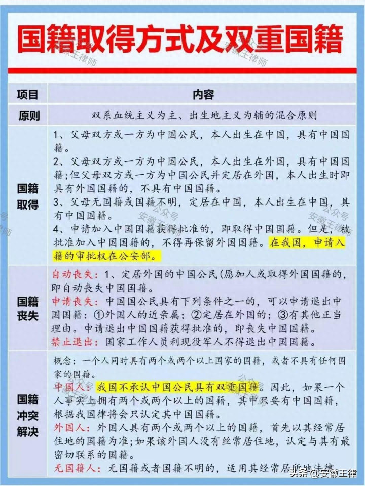 4、申请加入中国国籍获得批准的,即取得中国国籍。但是,被批准加入中国国籍的,不得再保留外国国籍。在我国,申请入籍的审批权在公安部。