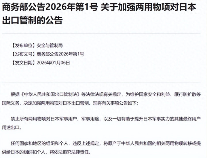 公告里的条条框框写得一清二楚,所有军民两用物项,一律禁止销往日本军事相关用户;哪怕是那些有可能被用来提升军事实力的用途,也被彻底堵死了通道。