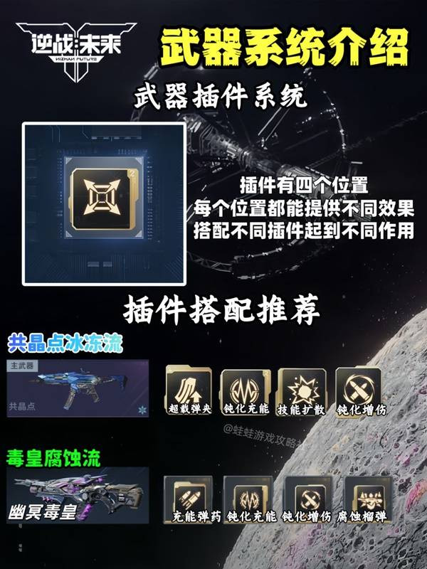 - 插件系统:每把主武器和副武器都有4个插件位,插件也分品质,新手前期不用追求高阶,先用蓝色稀有插件过渡就好。插件优先选“伤害增幅、暴击提升”这类直接加输出的,简单粗暴提升战力。装配的时候更省心,点击插件位,系统会自动识别适配的插件,双击就能装上,完全不用自己费心记位置,小白也能秒会。