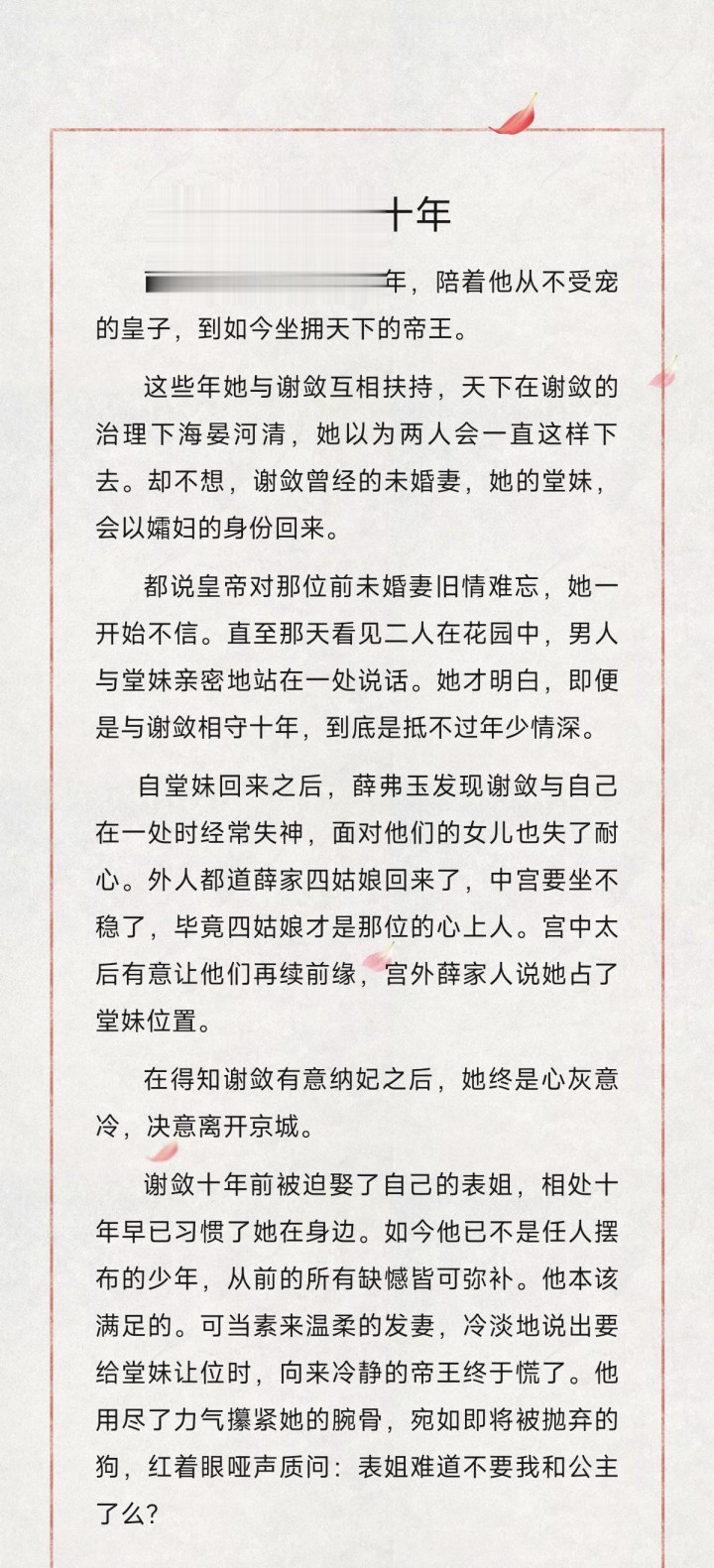大家好,我是柚子悦推文,今天给大家推荐的是白露栖木的《帝后第十年》,有喜欢的可以点赞收藏分享哦喔~