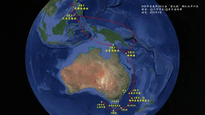 在实弹演习中,以“遵义舰”为首的舰队绕过半个地球,在距离悉尼不到600公里的国际水域里进行实弹射击。