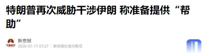这边劫船风波未平,美国又将矛头对准了伊朗。1 月 10 日,特朗普在社交媒体高调宣称 “美国随时准备为伊朗局势提供帮助”,看似善意的表态,实则暗藏军事干涉的野心。